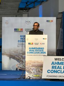 પ્રાસંગિક પ્રવચન કરતા CREDAI અમદાવાદના પ્રમુખ અને સોમ ઇન્ફ્રાબિલ્ડના ચેરમેન શ્રી આલાપ પટેલે અમદાવાદના રિયલ એસ્ટેટ સમુદાયને ઓલિમ્પિક રેડી સિટી બનવાના અમદાવાદના મિશનને સમર્થન આપવા બદલ અભિનંદન આપ્યા હતા.