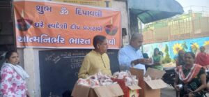 શાહપુર યુવકમંડળના ઉપક્રમે દિવાળીના તહેવારોમાં ઘરે ઘરે સ્વદેશી દીવા પ્રગટાવીને આત્મનિર્ભર ભારત બનાવવાના સંકલ્પને સાર્થક કરવાના શુભ આશયથી નાગરિકો અને મ્યુનિસિપલ શાળાના બાળકોને દીવા વિતરણ અને તારામંડળ વિતરણનો કાર્યક્રમ દરિયાપુરના સેવાભાવી ધારાસભ્ય કૌશિકભાઈ જૈનની ઉપસ્થિતિમાં યોજવામાં આવ્યો હતો.