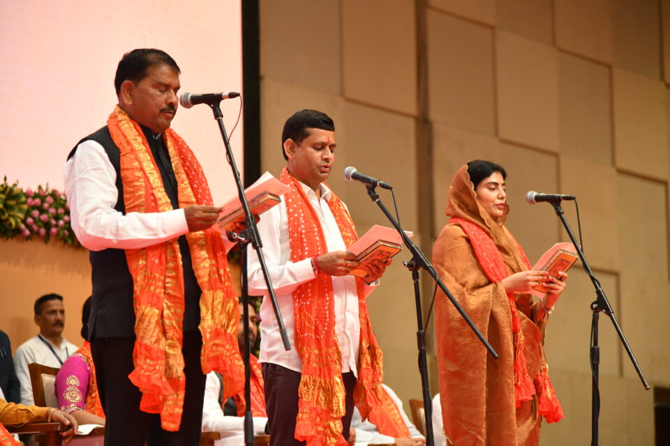 આ શપથવિધિ સમારોહમાં રાજ્યપાલશ્રી સમક્ષ નાયબ મુખ્યમંત્રીશ્રી તરીકે શ્રી હર્ષ સંઘવી તથા રાજ્ય મંત્રીમંડળના કેબિનેટ કક્ષાના 5 અને રાજ્ય કક્ષાના સ્વતંત્ર હવાલો ધરાવતાં 3 તથા રાજ્ય કક્ષાના 12 પદનામિત મંત્રીશ્રીઓએ ઈશ્વરના નામે શપથ લીધાં હતાં.