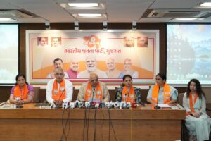 વડાપ્રધાન નરેન્દ્ર મોદીના નેતૃત્વમાં સંસદમાં મુકાયેલા મહિલાઓને સન્માન અને અધિકાર આપતા નારીશક્તિ વંદન અધિનિયમ સંશોધન બિલને મહિલા વિરોધી કોંગ્રેસ અને ઈન્ડી ગઠબંધને લોકસભામાં પસાર થતું અટકાવ્યું તે અંગે આજે પ્રદેશ ભાજપ કાર્યાલય ‘કમલમ‘, ગાંધીનગર ખાતે પત્રકાર પરિષદ યોજાઈ હતી. જેને કેન્દ્રિય મંત્રી અને મહારાષ્ટ્રના સાંસદ રક્ષા ખડસે, મુખ્યમંત્રી ભૂપેન્દ્ર પટેલ તથા પ્રદેશ ભાજપ પ્રમુખ જગદીશ વિશ્વકર્માએ સંબોધન કર્યું હતું.